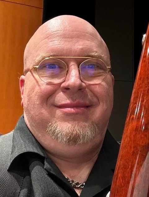 Presently a Music Composition major at Portland State University, his focus is on bringing accessible and interesting music and arrangements to players of all skill levels, and sharing his joy of learning about western art music with others. Born in Louisville, Kentucky, into a religiously conservative working-class family, he chose to put aside music to earn a more secure living in technology and academia. Thirty years later he returned to school to close the circle: "Music isn't something we should leave to professionals. It's too important to the human experience, and as long as we're alive it's never too late to dive in."